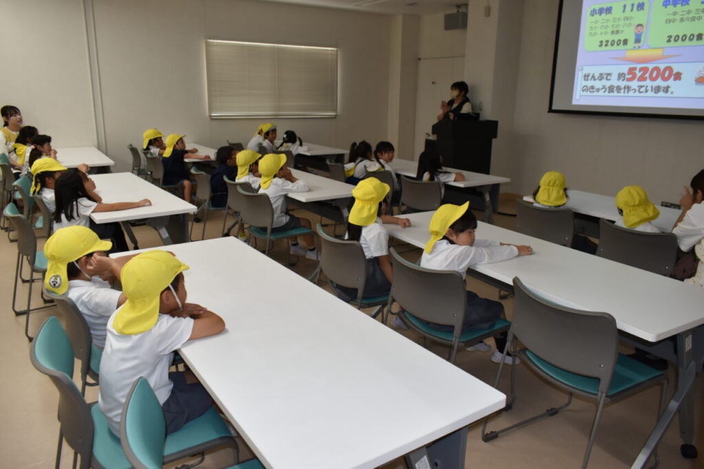館林市立学校給食センターへ出かけました。 投稿日 2025年11月6日 著者 富士こども園 ブログのカテゴリー ひかり組(5歳児) 10月17日金曜日、ひかり組(5歳児)が館林市立校給食センターへ出かけました。 調理の様子を見学したり、カラーボールなどで、大きなしゃもじやお玉を使って調理の体験をしました。スライドショーのクイズでは、給食センターの仕組みについてたくさん学びました。とても楽しい一日を過ごせました。みんな小学校への楽しみがまた一つ増えました。