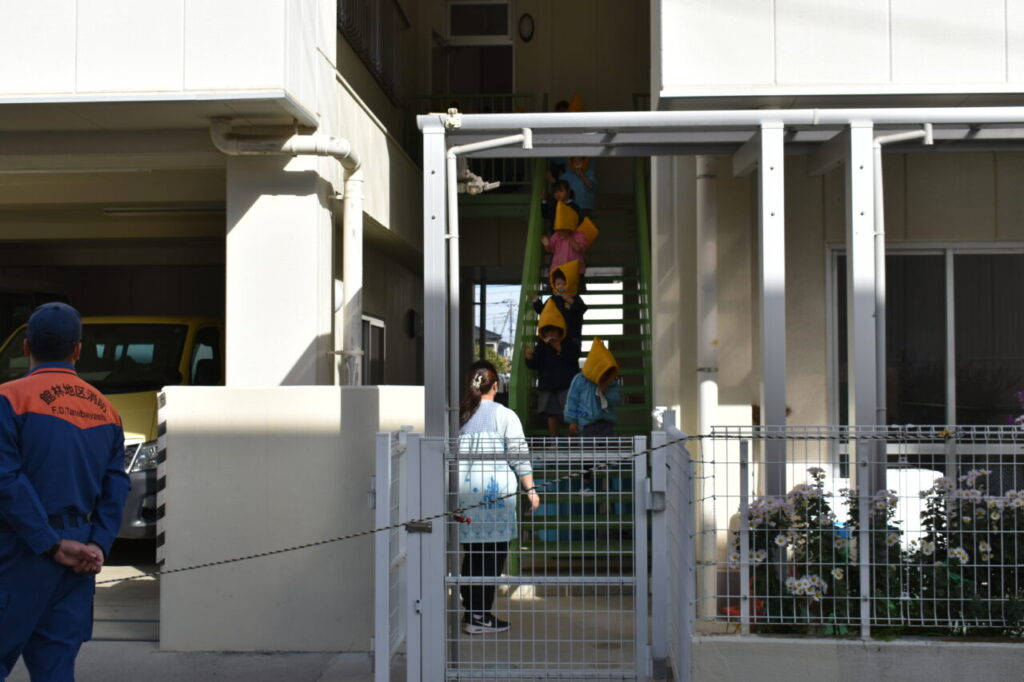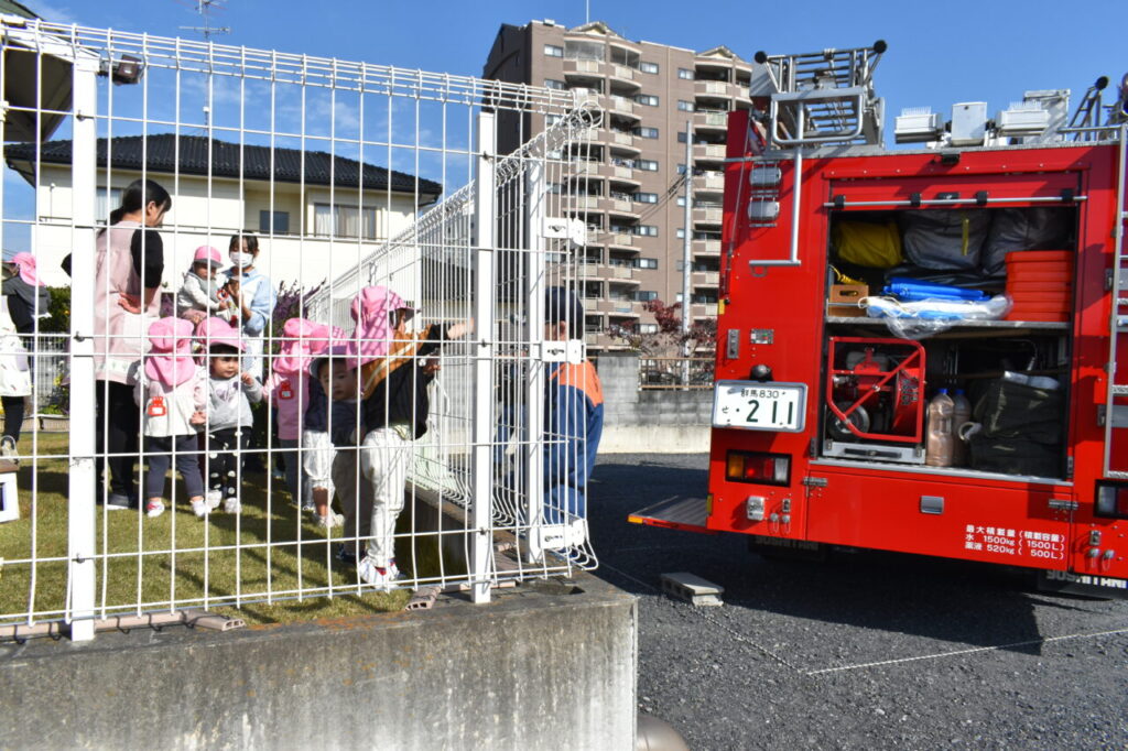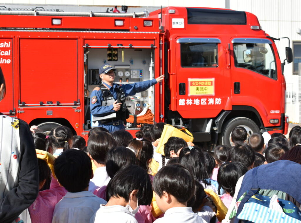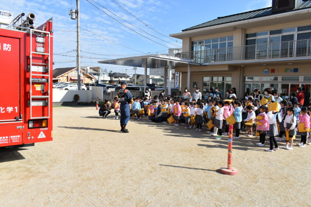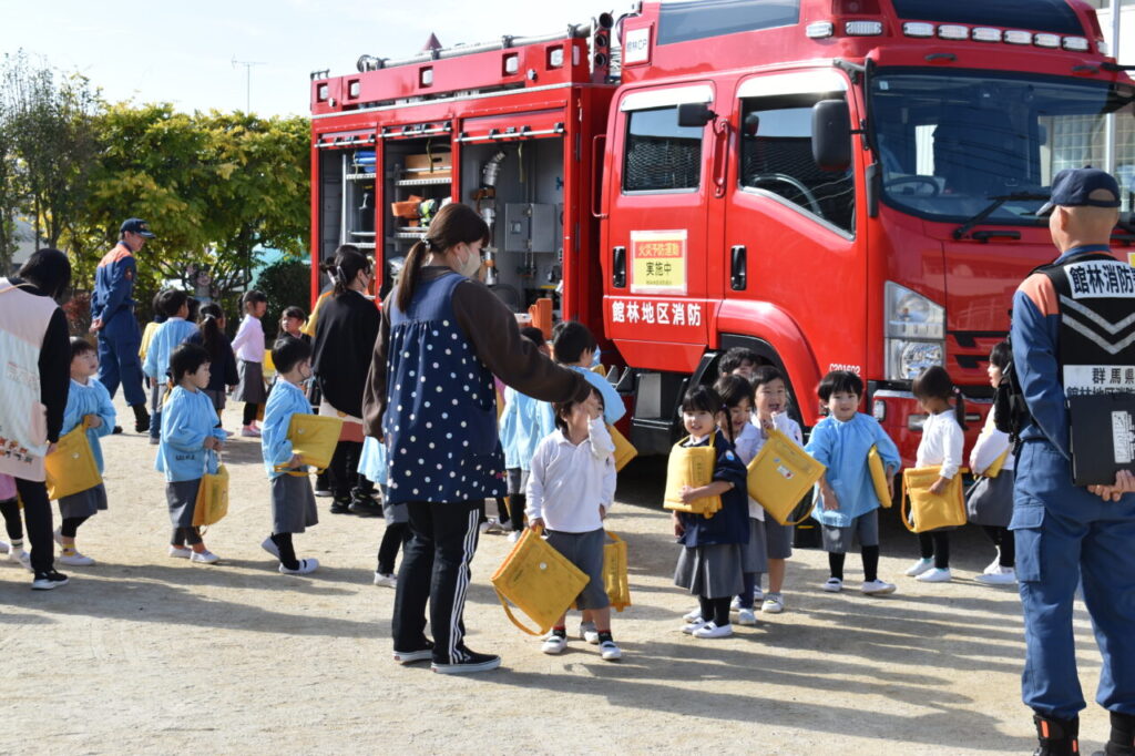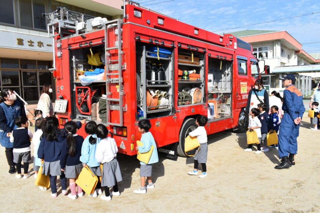 避難訓練を行いました 投稿日 2025年11月19日 著者 富士こども園 ブログのカテゴリー 未分類 11月14日(金)に 館林消防署の消防士さん立ち会いの下、避難訓練を行いました。避難訓練の後は、消防士さんから避難の時の大切なお話を聞き、お話のあとは消防自動車の見学をしました。