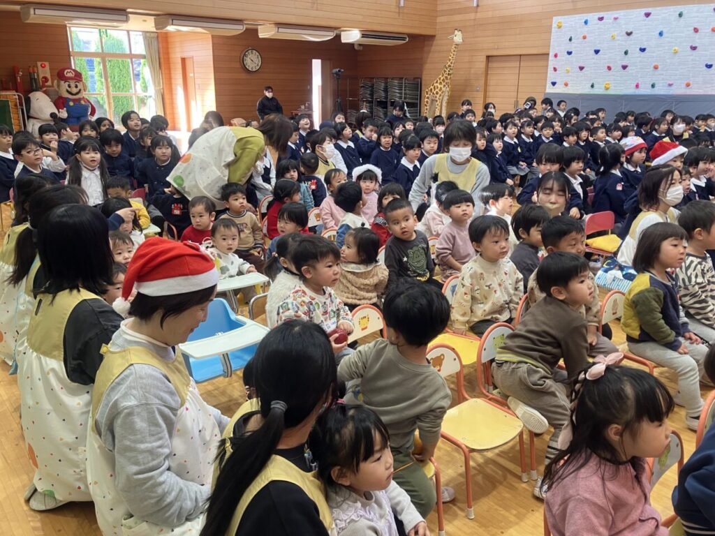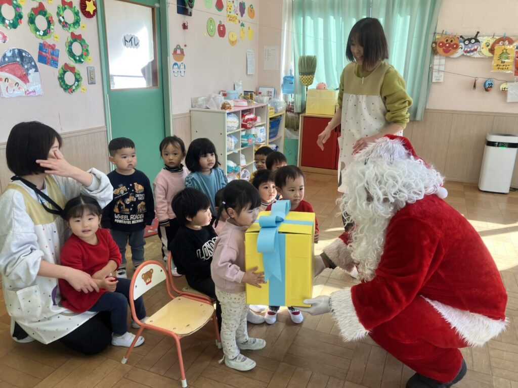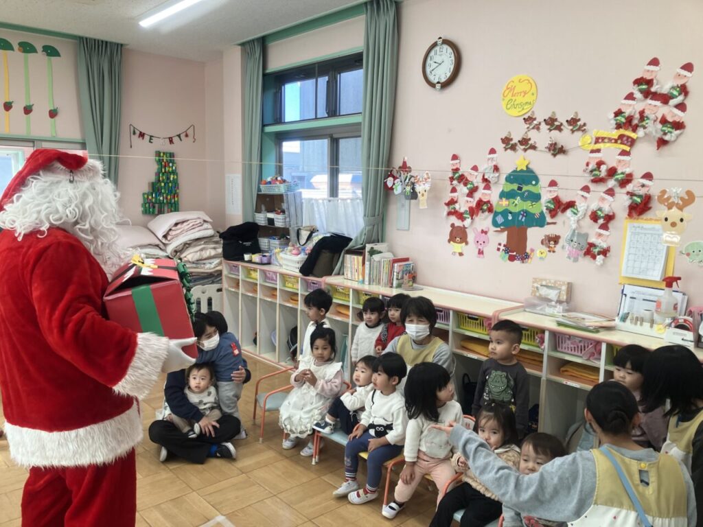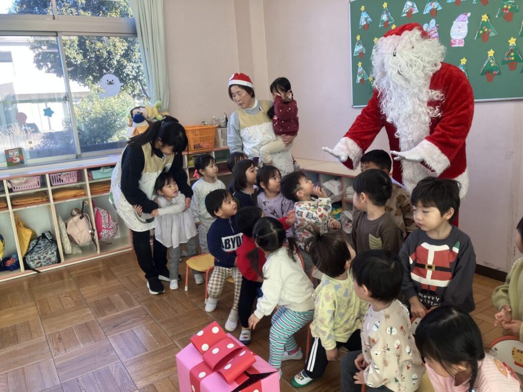 クリスマス会を楽しみました✨(ナーサリー舎) 投稿日 2025年12月22日 著者 富士こども園 ブログのカテゴリー ことり組(2歳児) ブログのカテゴリー ひよこ組(0歳児・1歳児) ナーサリーの子ども達は、それぞれのお部屋でサンタさんからプレゼントを受け取り、記念写真を撮りました。 写真を撮ったあとに、みんなでバスに乗り富士ホールで先生たちの素敵な演奏を聴きました。 富士ホールからナーサリーに戻り、お楽しみのお給食を食べました。 今日はおやつもクリスマスデザート🎄豆腐ココアケーキと豆乳ホイップクリームでした。 1日クリスマスの雰囲気たっぷりの時間を過ごしました。