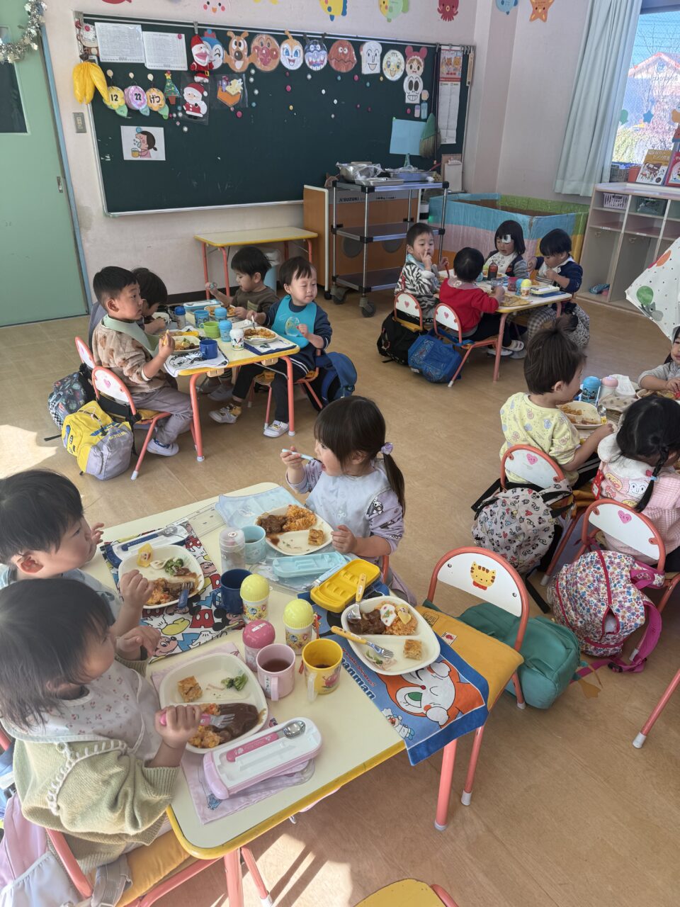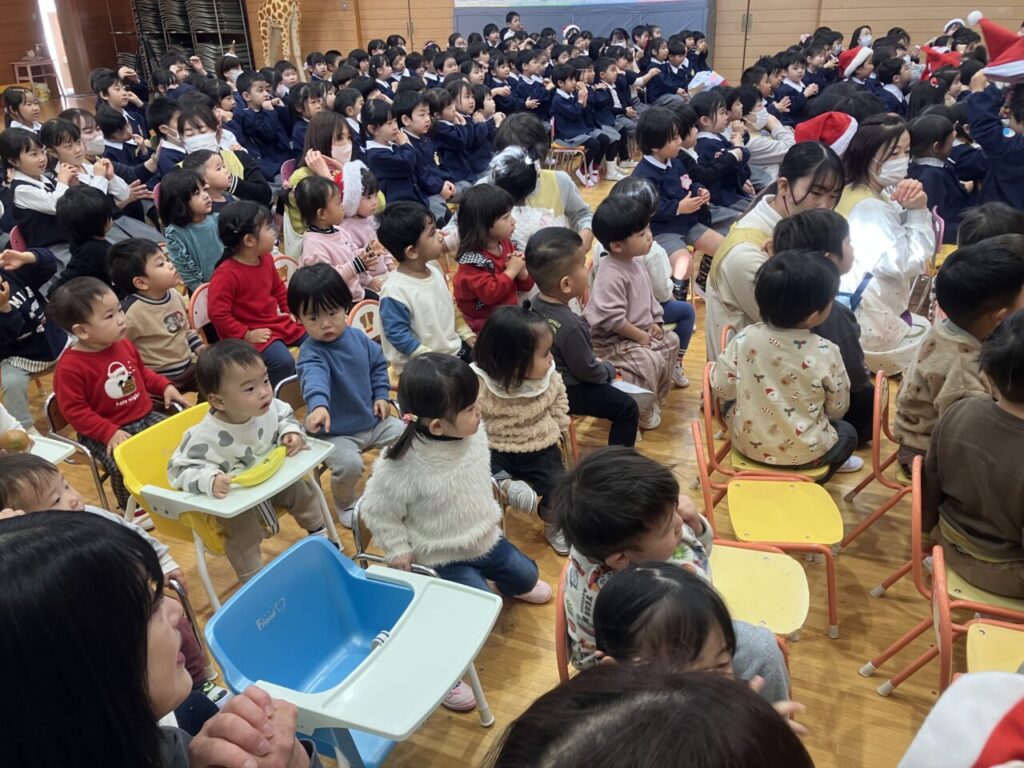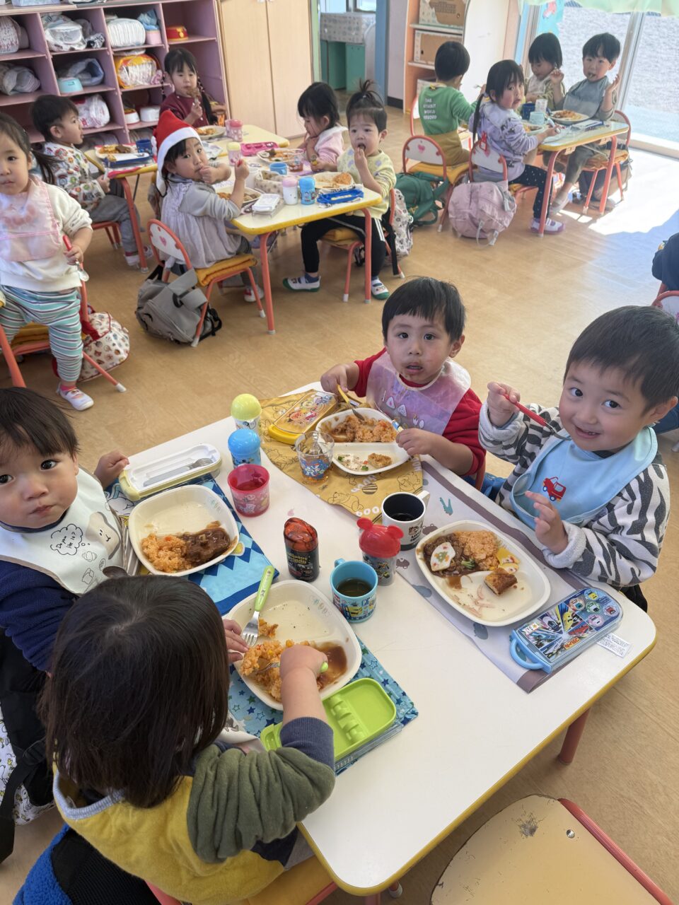 クリスマス会を楽しみました✨(ナーサリー舎) 投稿日 2025年12月22日 著者 富士こども園 ブログのカテゴリー ことり組(2歳児) ブログのカテゴリー ひよこ組(0歳児・1歳児) ナーサリーの子ども達は、それぞれのお部屋でサンタさんからプレゼントを受け取り、記念写真を撮りました。 写真を撮ったあとに、みんなでバスに乗り富士ホールで先生たちの素敵な演奏を聴きました。 富士ホールからナーサリーに戻り、お楽しみのお給食を食べました。 今日はおやつもクリスマスデザート🎄豆腐ココアケーキと豆乳ホイップクリームでした。 1日クリスマスの雰囲気たっぷりの時間を過ごしました。