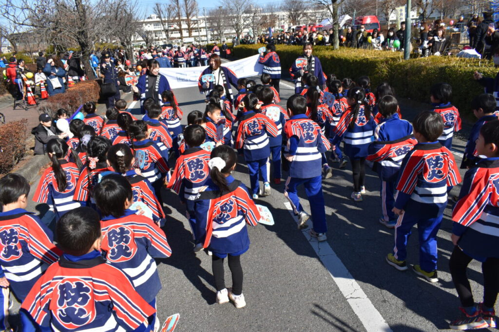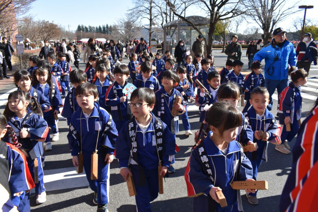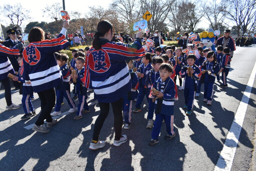 1月10日に館林市のゆめひろばで館林地区消防組合主催の出初式がありました。ひかり組の子ども達がはっぴを着て、「火の用心!用心用心!火の用心!」のかけ声で行進しました。