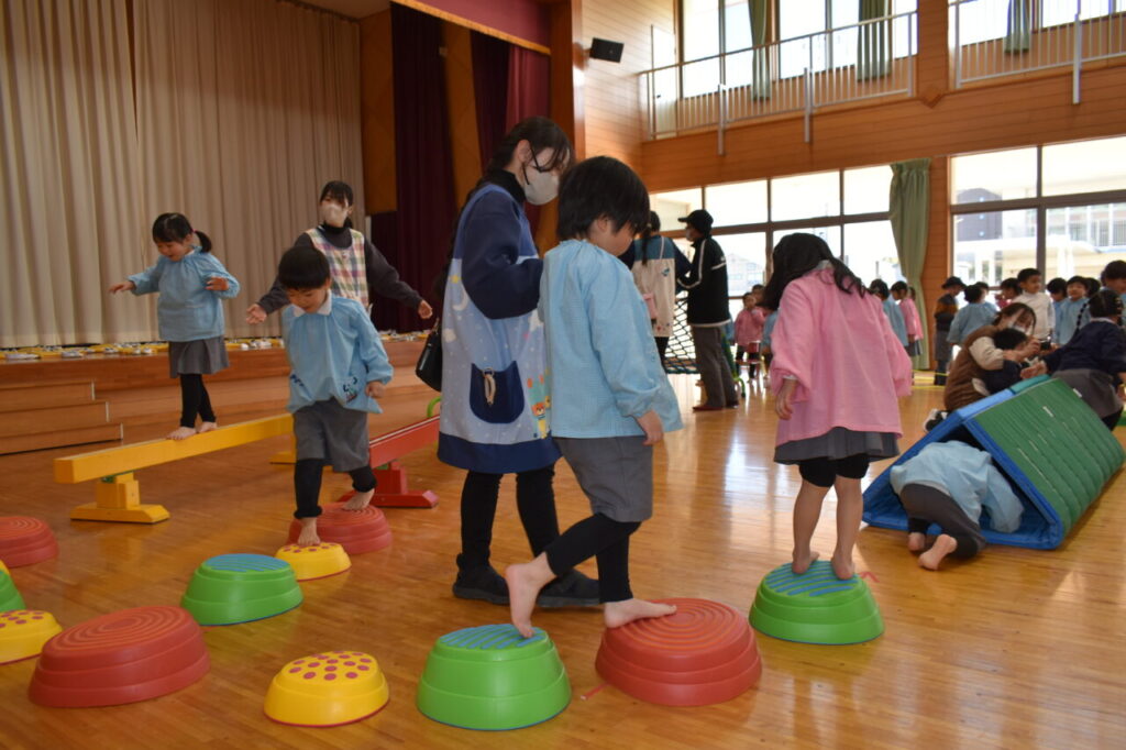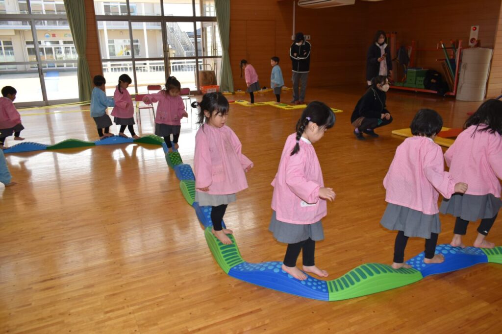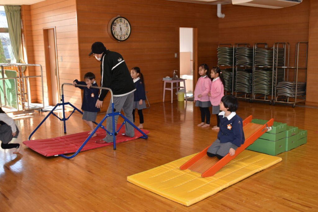 スポーツレクリエーション 投稿日 2026年1月27日 著者 富士こども園 ブログのカテゴリー ひかり組(5歳児) ブログのカテゴリー ほし組(4歳児) ブログのカテゴリー にじ組・はな組(3歳児・満3歳児) 1月21日(水)に富士ホールで、学年ごとにスポーツレクリエーションを行いました。滑り台や鉄棒・平均台・はしごなど、室内遊具を使って遊びました。身体を思いっきり使い楽しみました!子ども達からは、「たのしかったー!」「またやりたい!」と嬉しそうな声が聞こえてきました。