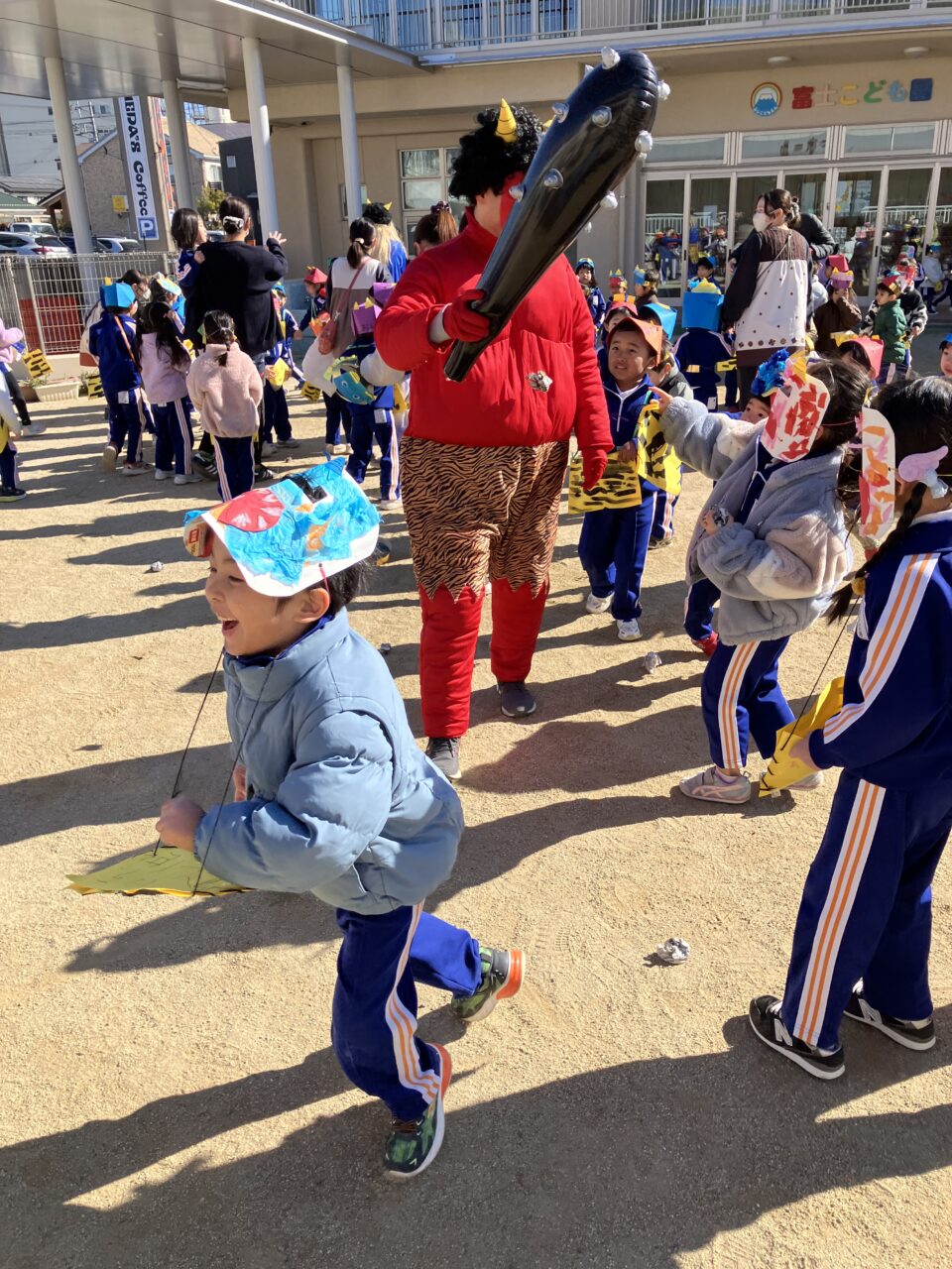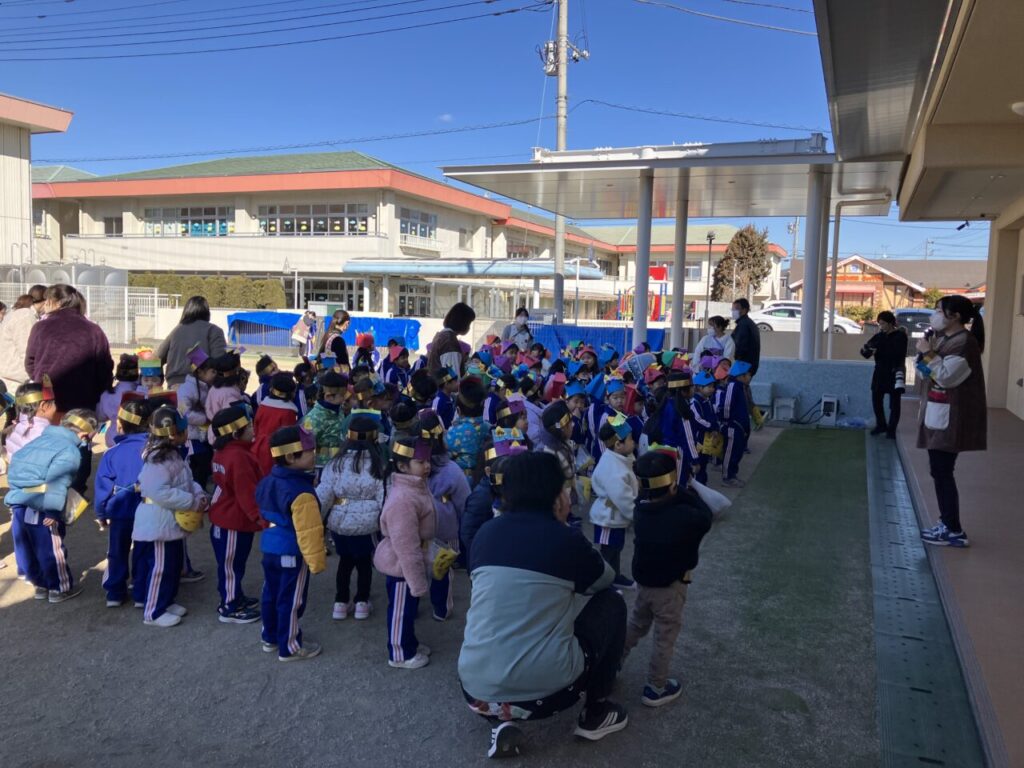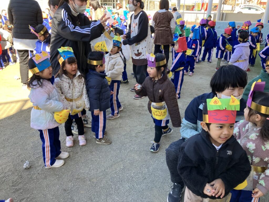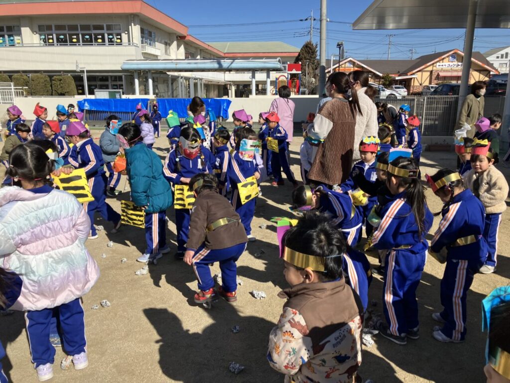 豆まき(幼稚部) 投稿日 2026年2月6日 著者 富士こども園 ブログのカテゴリー ひかり組(5歳児) ブログのカテゴリー ほし組(4歳児) ブログのカテゴリー にじ組・はな組(3歳児・満3歳児) 節分の豆まきをしました。みんなのおなかの中にいる鬼を退治できたかな?!自分で作った鬼のお面をつけて新聞紙で豆を作り、みんなで豆まきの歌を歌ったり「おには~そと!ふくは~うち!」と元気な声を出して、赤鬼と青鬼を退治しました!