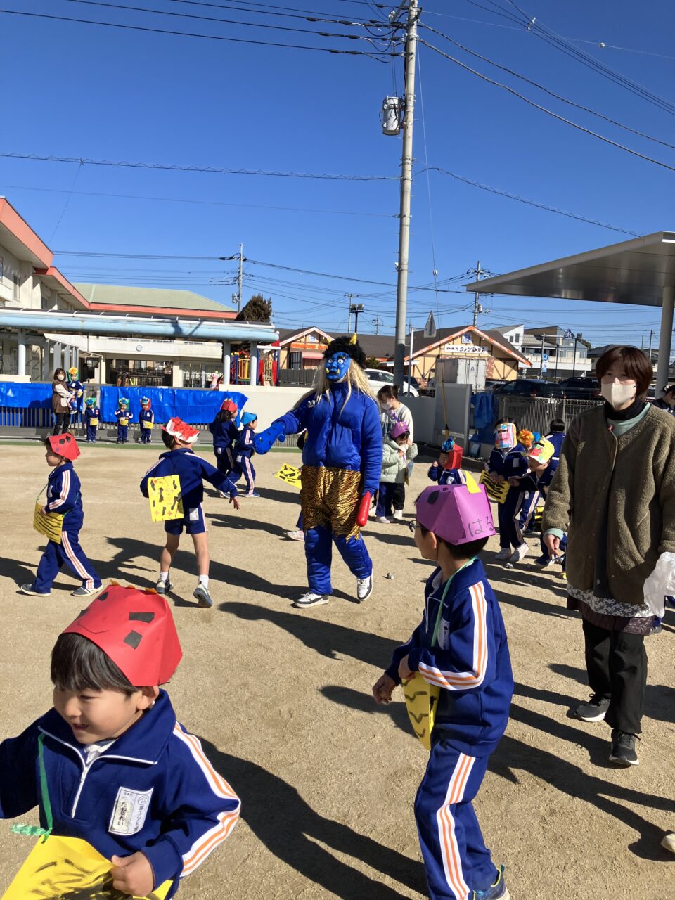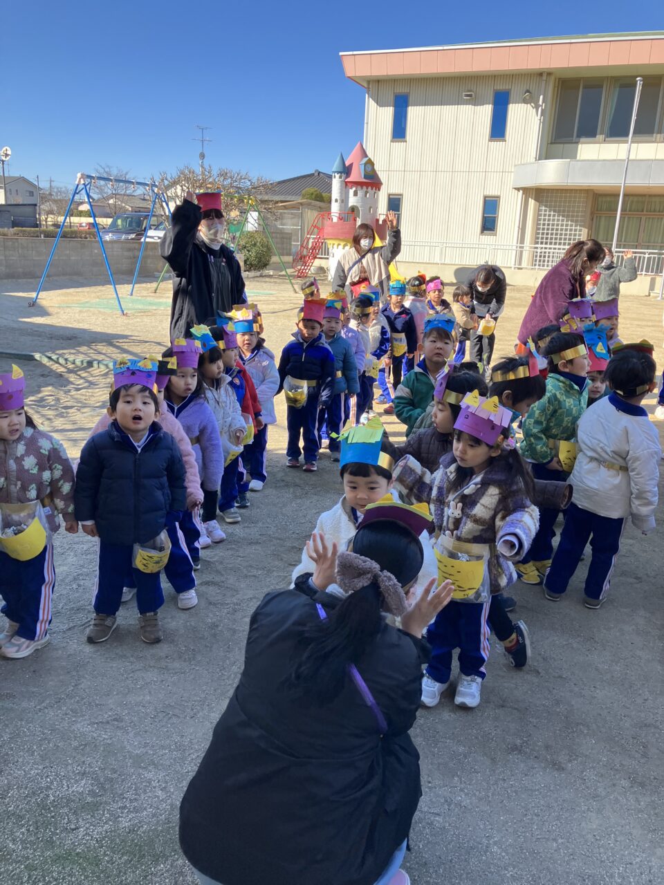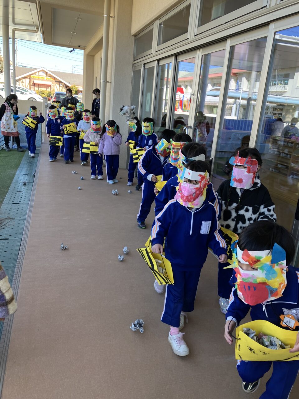 豆まき(幼稚部) 投稿日 2026年2月6日 著者 富士こども園 ブログのカテゴリー ひかり組(5歳児) ブログのカテゴリー ほし組(4歳児) ブログのカテゴリー にじ組・はな組(3歳児・満3歳児) 節分の豆まきをしました。みんなのおなかの中にいる鬼を退治できたかな?!自分で作った鬼のお面をつけて新聞紙で豆を作り、みんなで豆まきの歌を歌ったり「おには~そと!ふくは~うち!」と元気な声を出して、赤鬼と青鬼を退治しました!