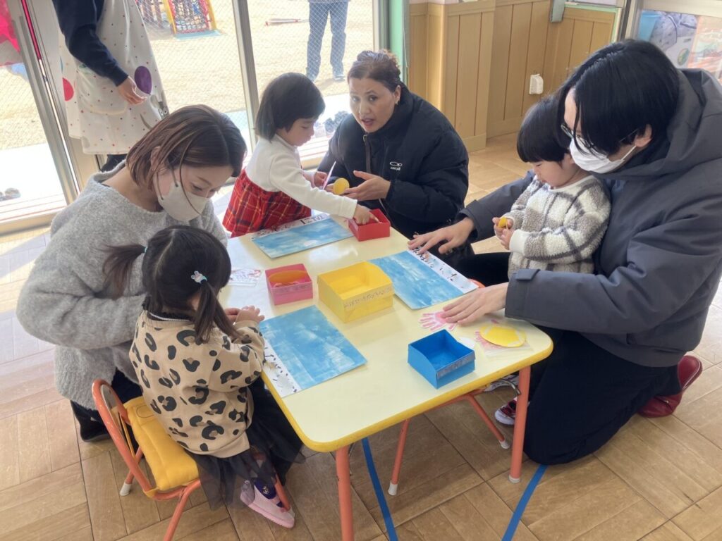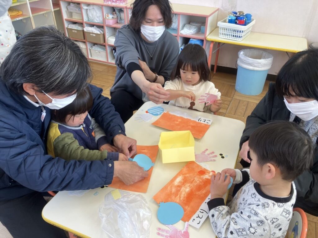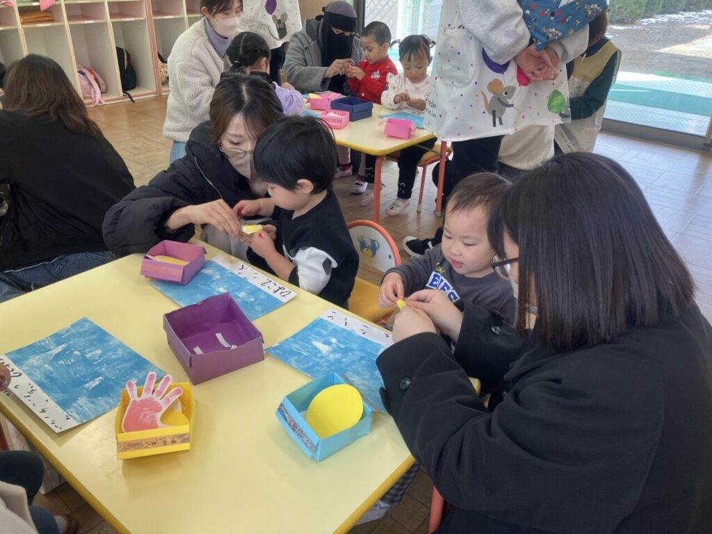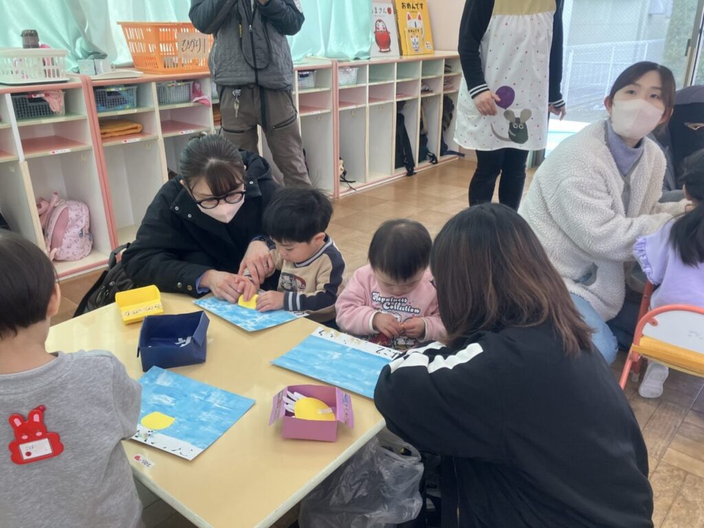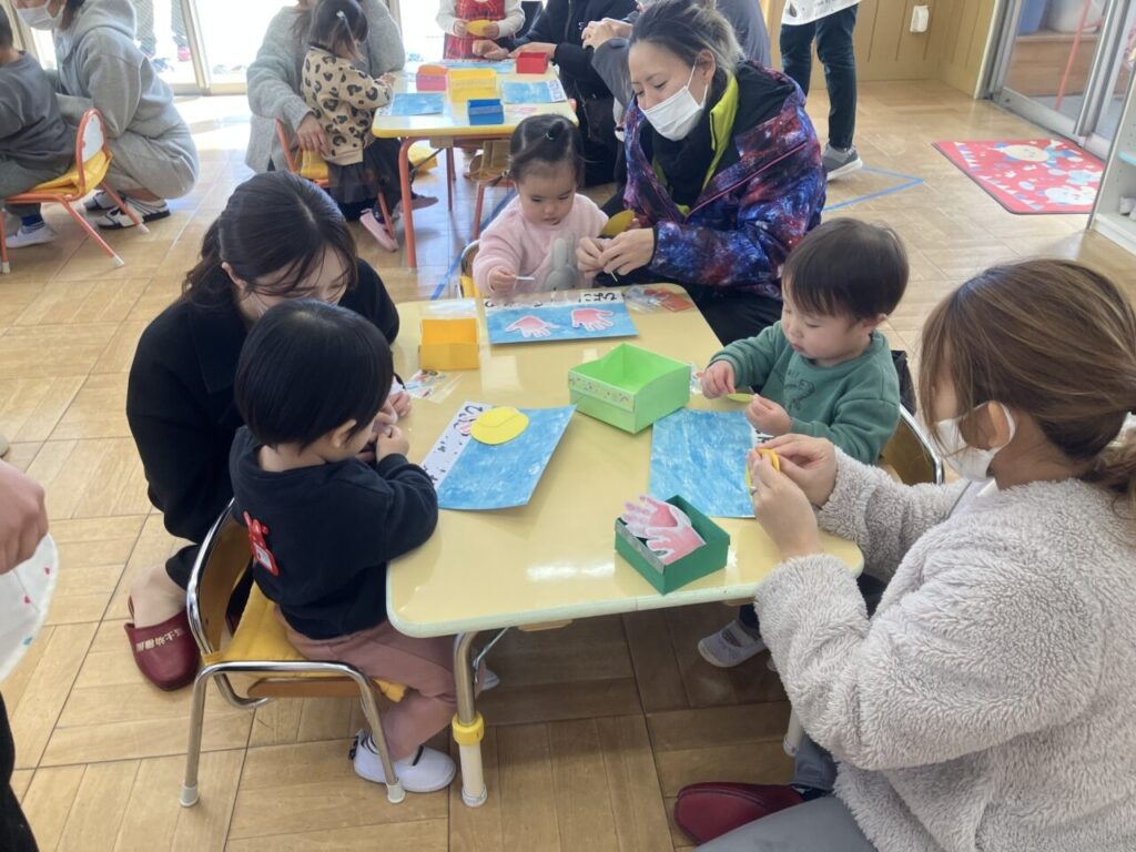 保育参観(ナーサリー部) 投稿日 2026年2月25日 著者 富士こども園 ブログのカテゴリー ことり組(2歳児) ブログのカテゴリー ひよこ組(0歳児・1歳児) 2月10日(火)にナーサリー部で保育参観を行ないました。 4月からの思い出を振り返り、親子で製作をしたり、歌をうたったりしました。 親子で「ここにはる?」「こっち?」と相談しながら笑顔で楽しんでいました。