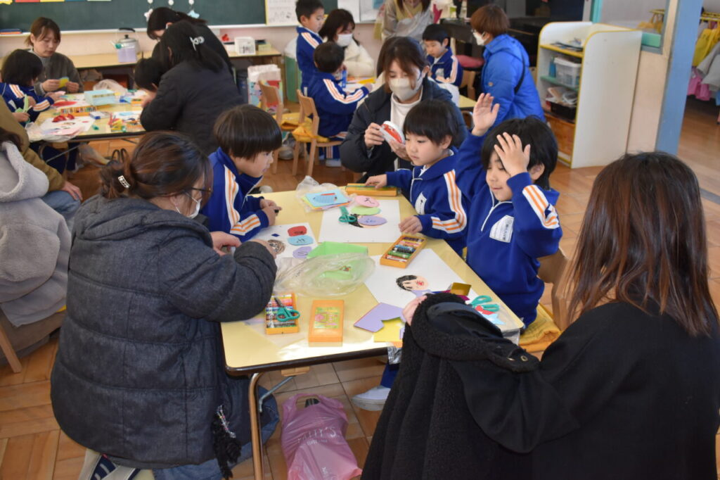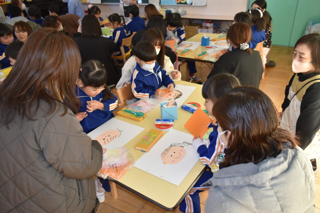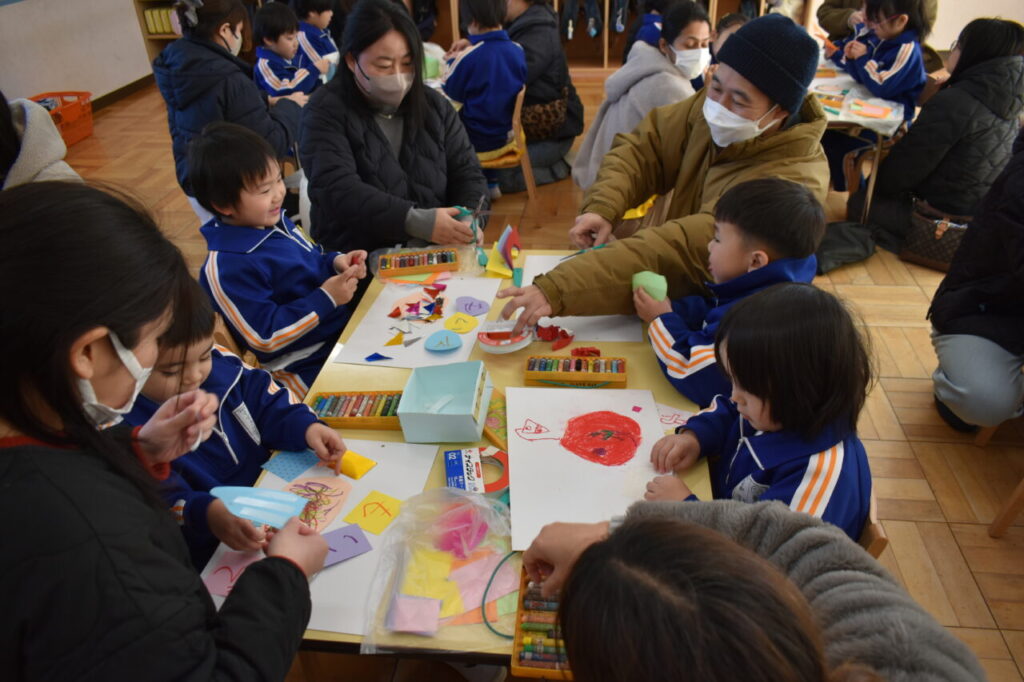 保育参観(年中 ほし組) 投稿日 2026年2月26日 著者 富士こども園 ブログのカテゴリー ほし組(4歳児) 2月19日に、ほし組の保育参観がありました。「おもいで」(4月から作ってきた製作物をまとめたもの)の表紙を親子で作りました!
