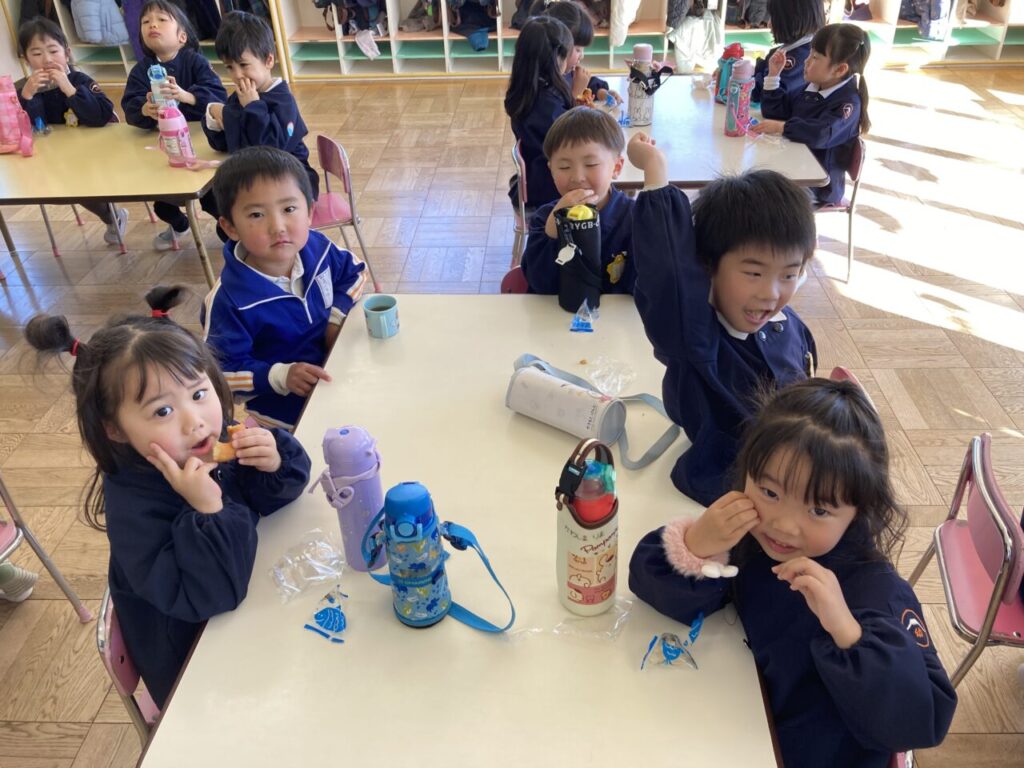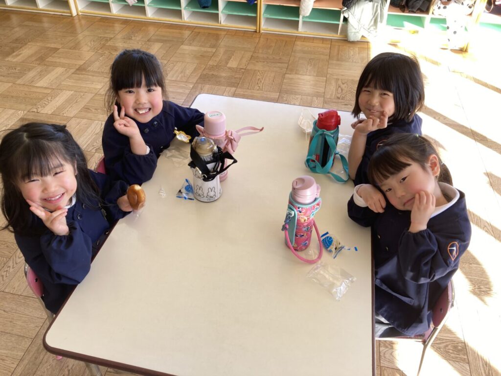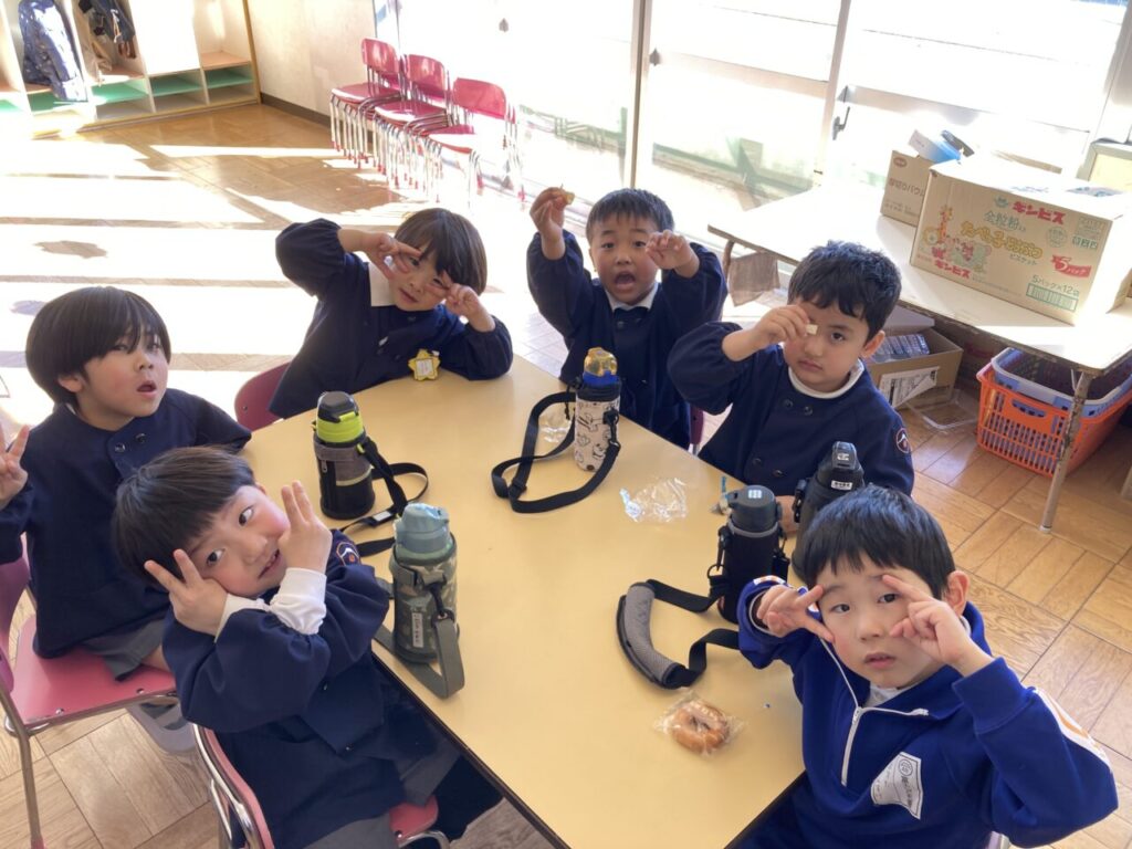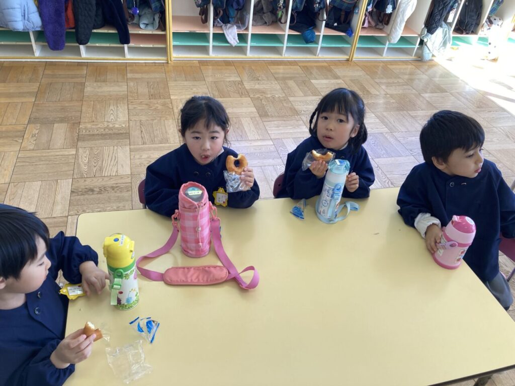 ほし組さん(預かり保育)のお外遊びとおやつ☆ 投稿日 2026年3月5日 著者 富士こども園 ブログのカテゴリー ほし組(4歳児) 暖かい日が増え、お外に出ることが多くなってきました。子ども達は大喜びで楽しく遊んでいます! お外で体を動かしたあと、お部屋に戻りお友達と席を決めて、おいしくおやつを食べています!