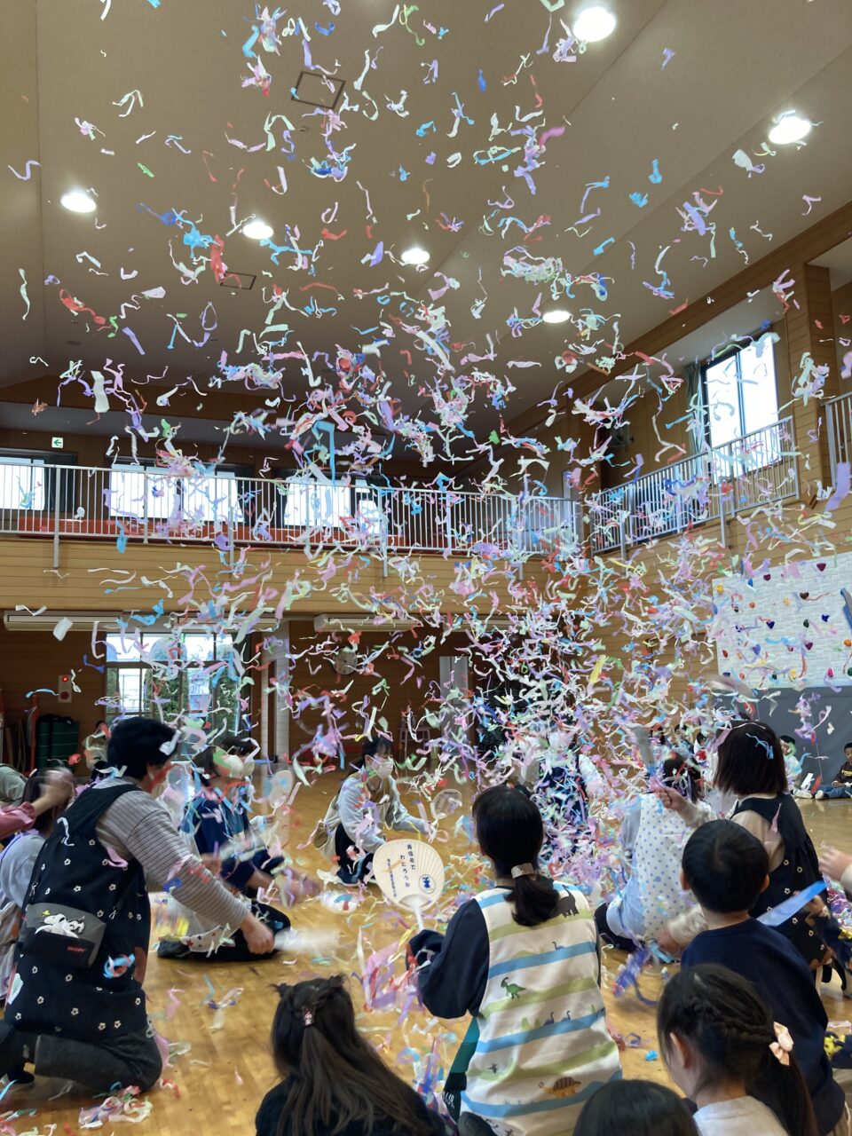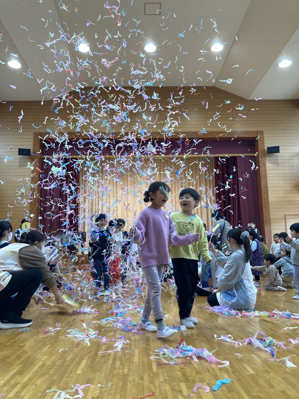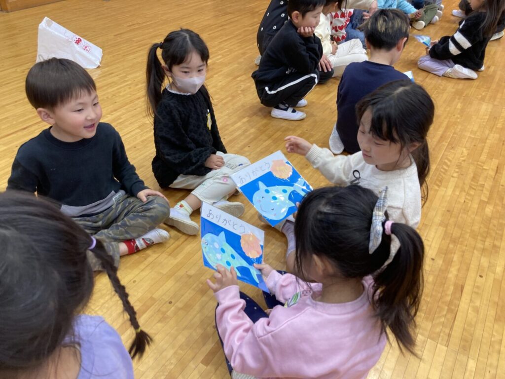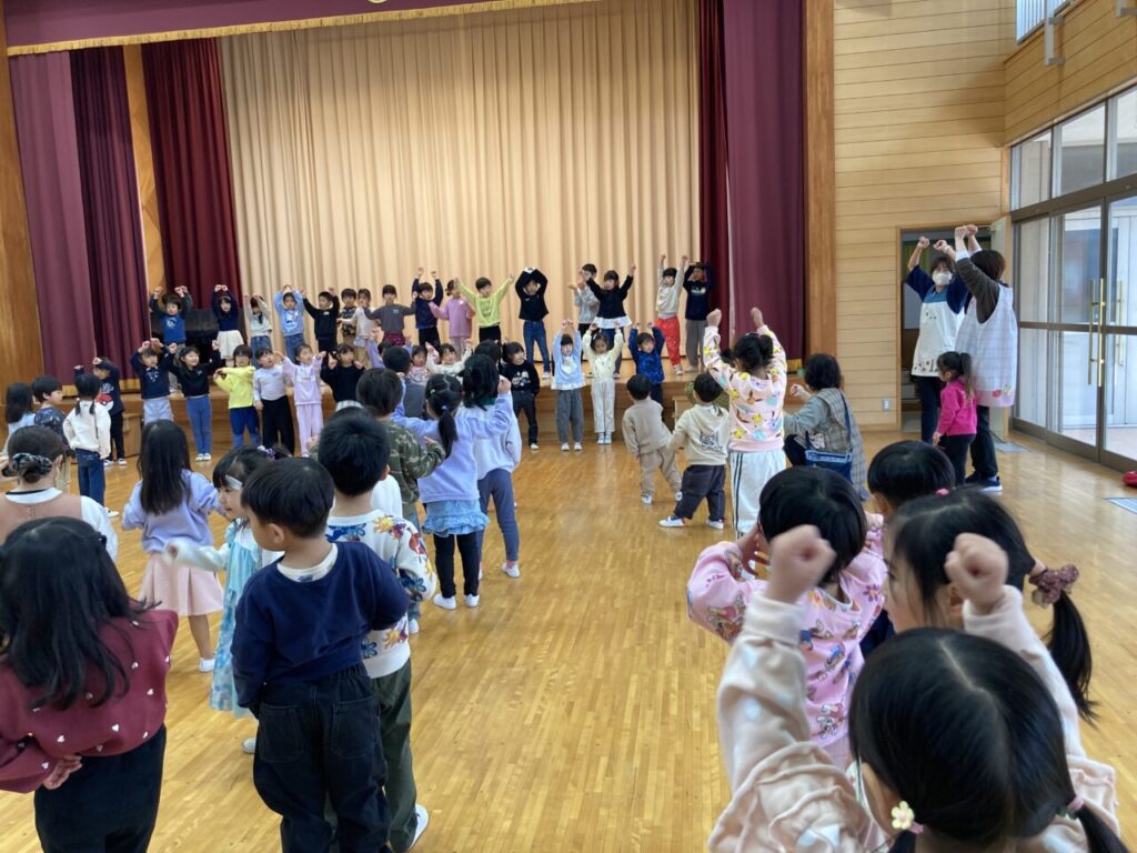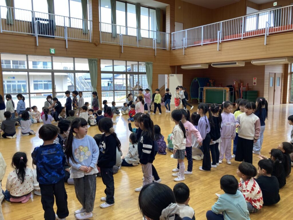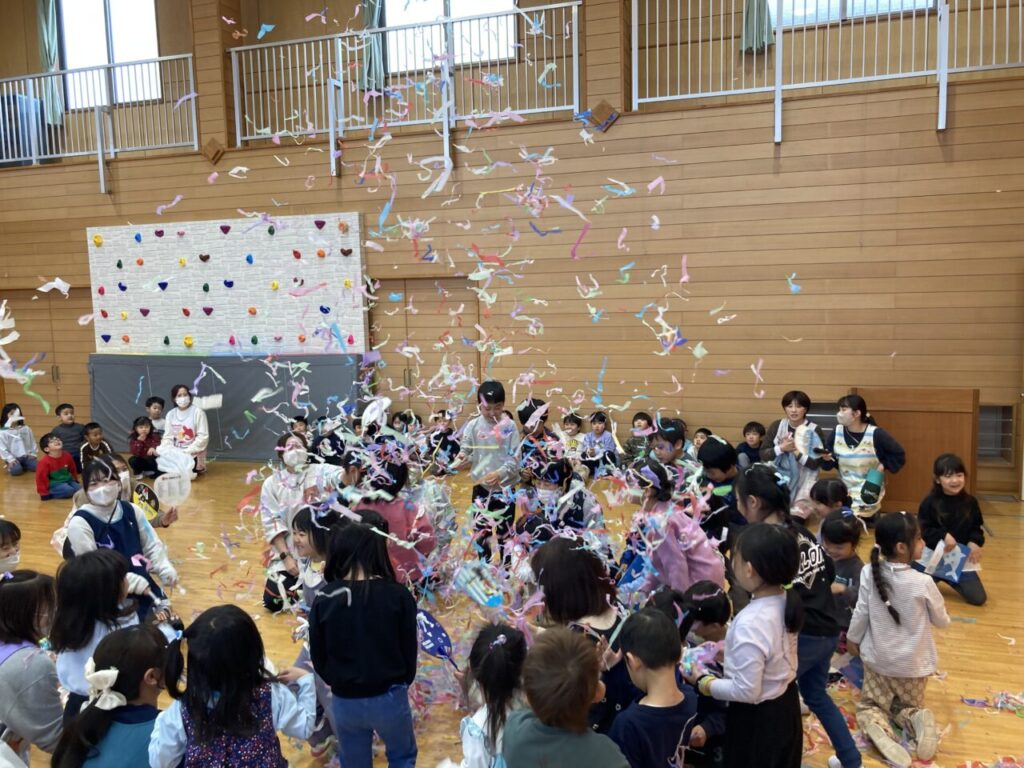 預かり保育でお別れ会を行いました! 投稿日 2026年3月27日 著者 富士こども園 ブログのカテゴリー ひかり組(5歳児) ブログのカテゴリー ほし組(4歳児) ブログのカテゴリー にじ組・はな組(3歳児・満3歳児) 3月26日(木)に預かり保育で、年少・年中さんがもうすぐ小学生になる年長さんに、ありがとうの気持ちを込めてお別れ会を開きました。 みんなでふれあい遊び、お遊戯をして楽しみました! 年長さんの「バブルバブル」ダンスチームからダンスのプレゼント♡ 会場が一体となり盛り上がりました‼ 年中さんが代表して年長さんへプレゼントを渡しました。 先生達から素敵なおはながみのプレゼントみんな大喜び‼ 最後におはながみが舞う中で、みんなに見送られながら年長さんが退場していきました!