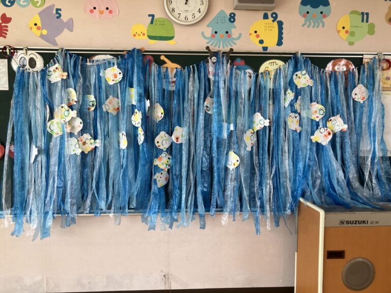 ことり組では運動会の親子競技の準備でお野菜スタンプを押してお魚を作りました。 その後海に見立てたスズランテープに自分の作ったお魚を貼りました。 親子競技ではカラフルなバスに子供が乗り、海の中を通ります!当日をお楽しみにし […] -
